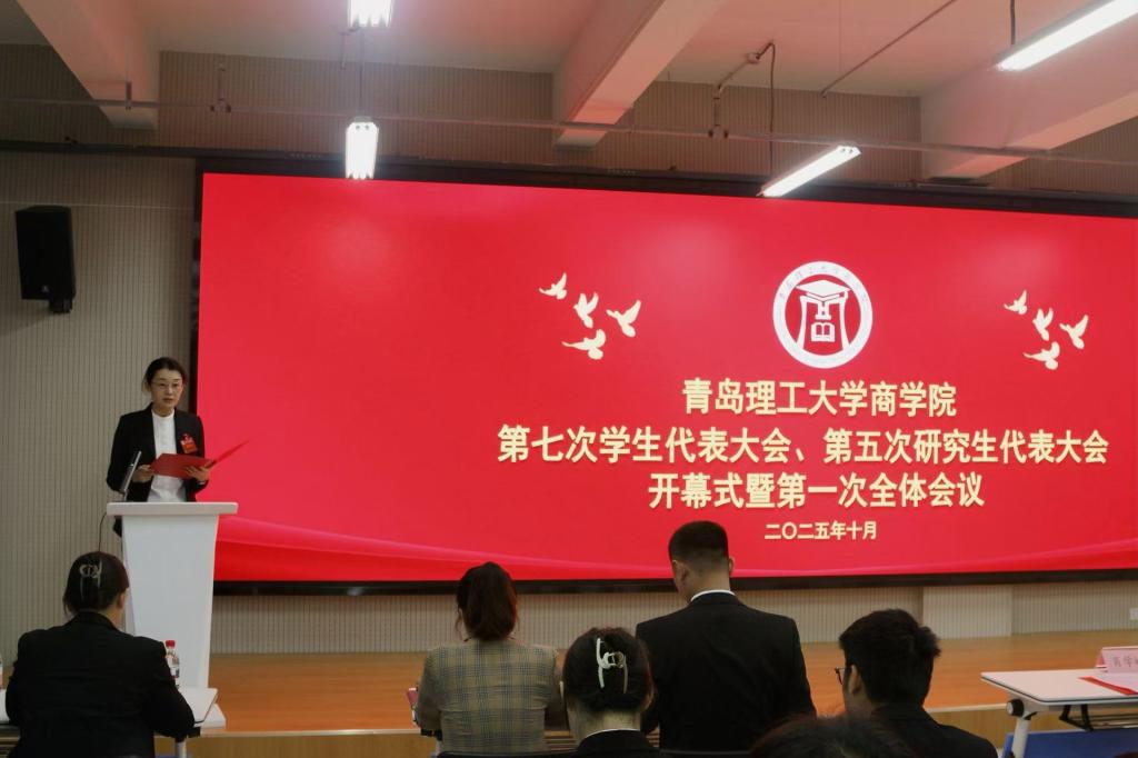 10月11日,商学院第七次学生代表大会、第五次研究生代表大会在黄岛校区商学院楼401报告厅顺利召开。学院党委书记肖学斌,党委副书记、副院长马松,团委书记兼学工办主任孙楚,各年级辅导员代表,校学生会、研究生会代表,兄弟学院代表和商学院学生代表到场参加。本次大会开幕式暨第一次全体会议由孙楚主持。