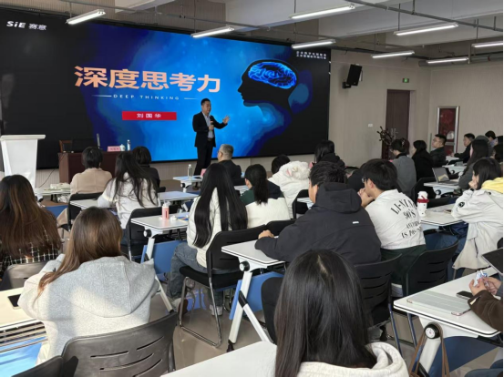 刘国华校友带来《深度思考力》主题报告分享,他围绕“为什么要深度思考”“如何培养深度思考”和“深度思考如何运用”三个方面,结合自身三十余年职场深耕经验,从校园到职场的角色转变切入,将哲学思辨性与现代经营管理理念融合,以“达克效应”“元认知”等概念启发师生对于深度思考力的认知,启发学生在专业学习与职业规划中,依托“洞悉本质”的深度思考力赋能自身成长。报告深入浅出,既有理论高度的哲学思辨性,又有饱含企业管理实践经验,还融入了中华优秀传统文化与企业经营管理融合的独特见解,为师生打开了提升思维品质和职业洞察力的新视角。