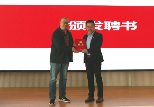 报告伊始,学院党委书记肖学斌为刘国华校友颁发学院校友理事会常务副会长聘书。