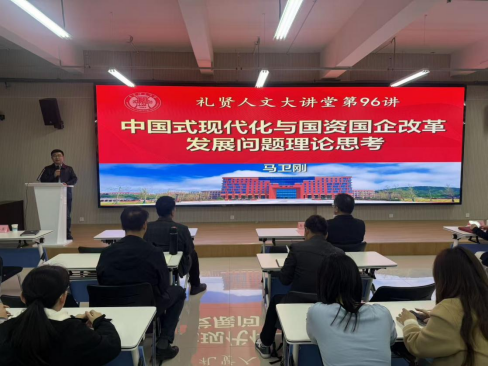 11月12日下午,礼贤人文大讲堂第九十六讲在青岛理工大学商学院401学术报告厅举行。讲座特邀青岛大学职业经理人学院院长马卫刚担任主讲嘉宾,就“中国式现代化与国资国企改革发展问题理论思考”主题开展宣讲。校党委副书记车景华、人文社科处处长宋玲、商学院党委书记肖学斌与全校师生代表150余人参会,商学院院长云乐鑫主持会议。
