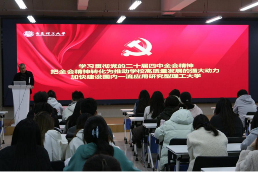 会上,学院党委书记肖学斌系统解读了党的二十届四中全会召开的时代背景、重要意义及核心部署,并聚焦“十五五”时期重要地位、指导方针与战略任务,强调要坚持和加强党的全面领导,号召全体学生要将学习贯彻全会精神作为重要政治任务,切实把思想和行动统一到党中央决策部署上来。他结合学院近三年学科竞赛成果与学业成绩对比数据,以鲜活案例和通俗语言重点阐释了全会关于“推进教育现代化、建设教育强国”“加强青年理想信念教育”等与学生紧密相关的内容。
