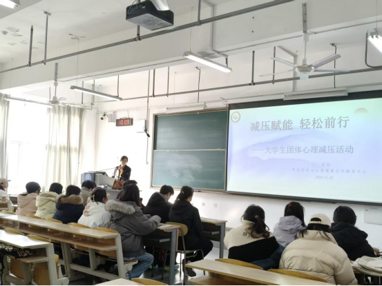 为精准缓解2026届毕业生求职与备考焦虑情绪,系统增强心理调适与抗压能力,11月27日,商学院组织开展“赋能‘心’动力,蓄力商未来”2026届毕业生心理团辅活动,活动特别邀请青岛市精神卫生中心中级心理治疗师吴玲担任主讲人,学院团委书记兼学工办主任孙楚,辅导员周丽、魏倩倩、张夕璇以及2026届毕业生代表参加活动。