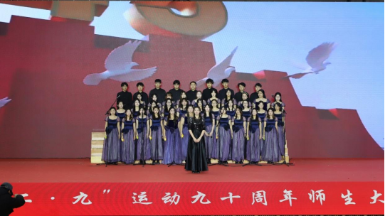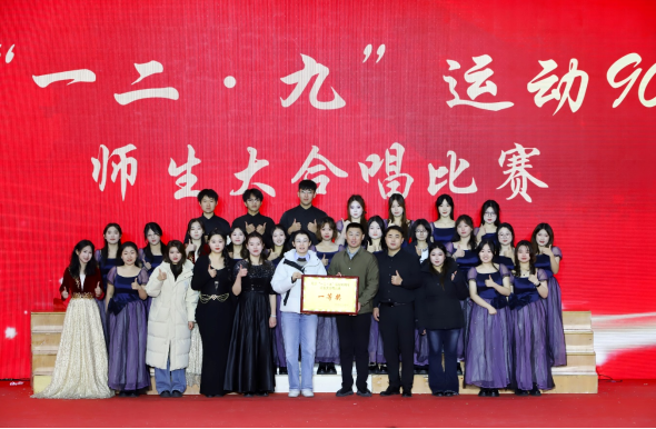 12月3日,在学校风雨操场体育馆举行的纪念“一二·九”运动90周年师生大合唱比赛中,商学院“商羽”合唱团凭借一曲《山河》荣获一等奖。比赛伊始,两位小朋友以清澈的童声悠然清唱“此刻站在人间,我已为你看过,故乡的月亮下是你我的万家灯火,名为‘山河’”,拉开了学院合唱的序幕。经过激烈角逐,合唱团以深情而有力的演绎,最终脱颖而出,摘得桂冠。