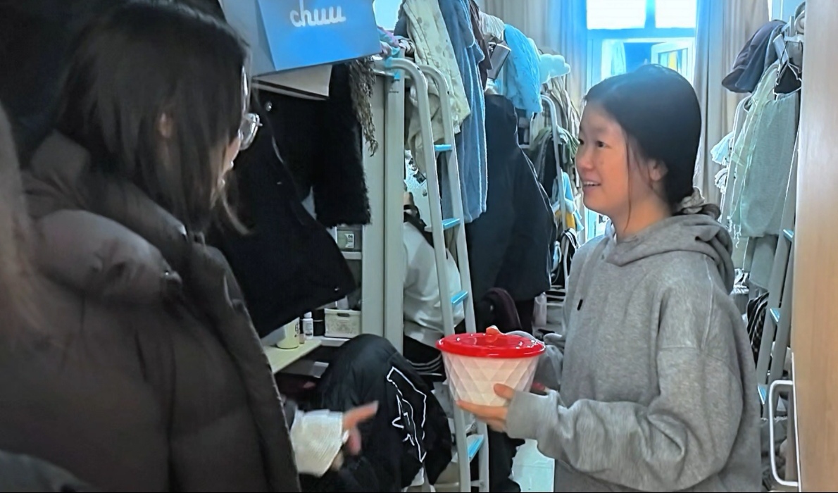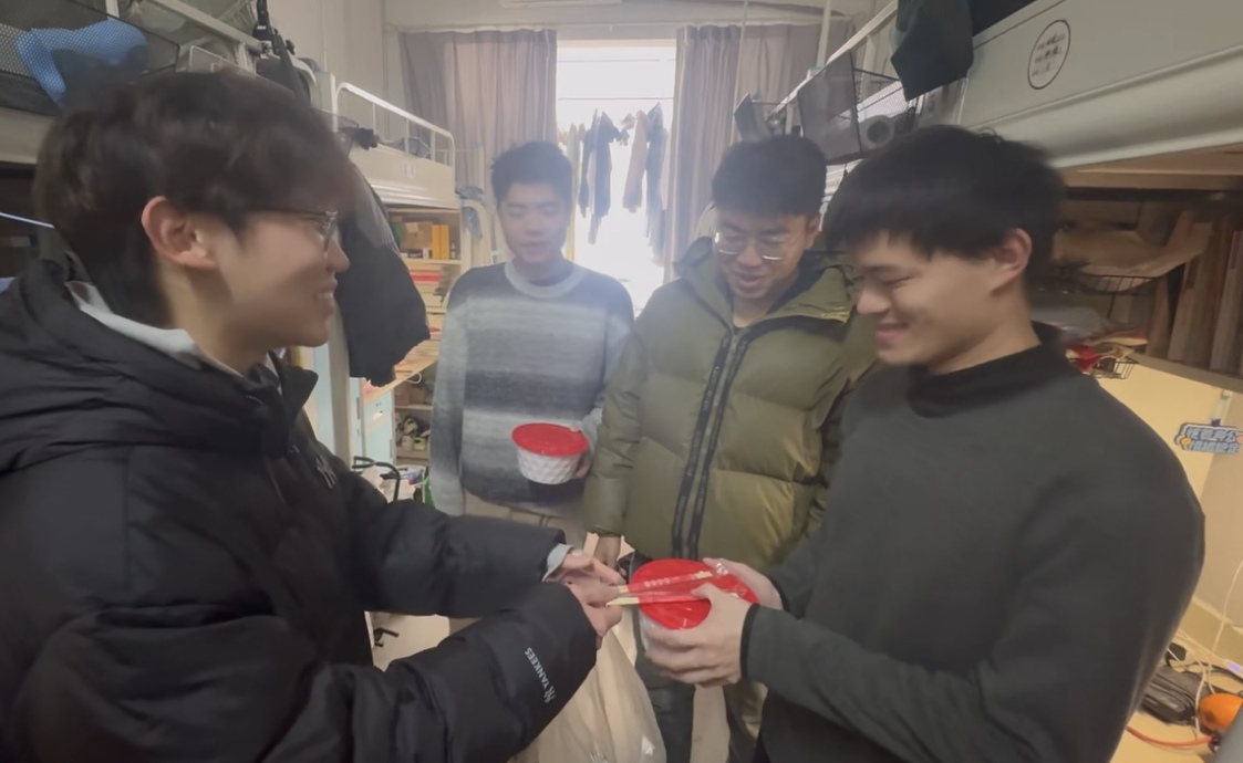 为给即将踏上研考战场的学长学姐加油鼓劲,大一学子精心制作“考研定胜饺”。研考前夕,学院毕业班辅导员与大一学生代表带着热气腾腾的饺子和诚挚祝福,送到备考学子手中。一份饺子,一份期许,让追梦路上的他们在寒冬里收获了满满的感动与力量。